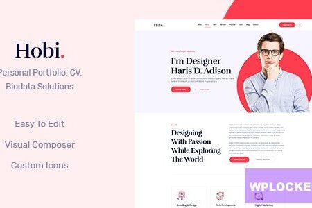 Hobi – Personal Portfolio WordPress Theme is a high-quality, creative portfolio theme featuring a unique design and clean, well-structured code. You can use it for multiple purposes, including minimal portfolios, agency websites, and freelancer showcases.