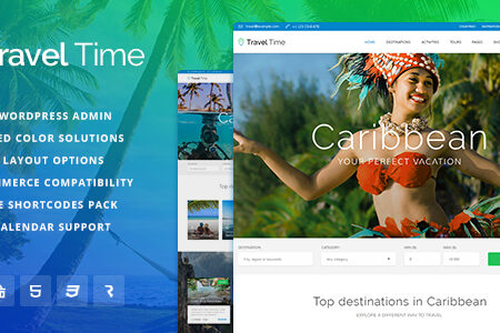 Travel Time is a perfect theme for all sorts of travel websites, like local travel agencies, hotel websites, blogs about traveling, resorts, adventure parks and tour companies. All special travel and tourism niche functionality is included.